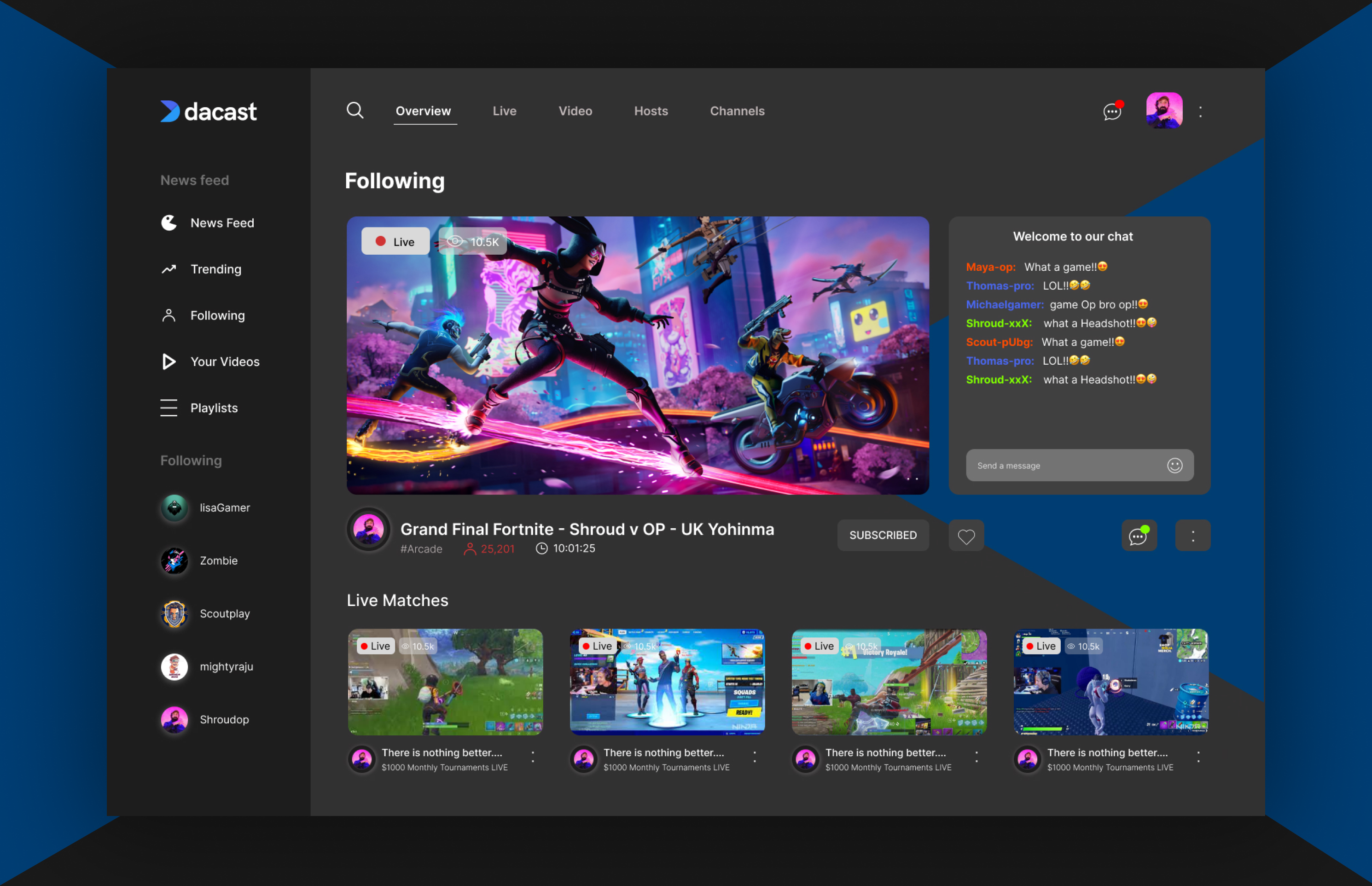 This is a streaming platform dedicated to gamers. This is a place that allows people to watch their favorite games, follow a new streamer, and chat with other streamers.