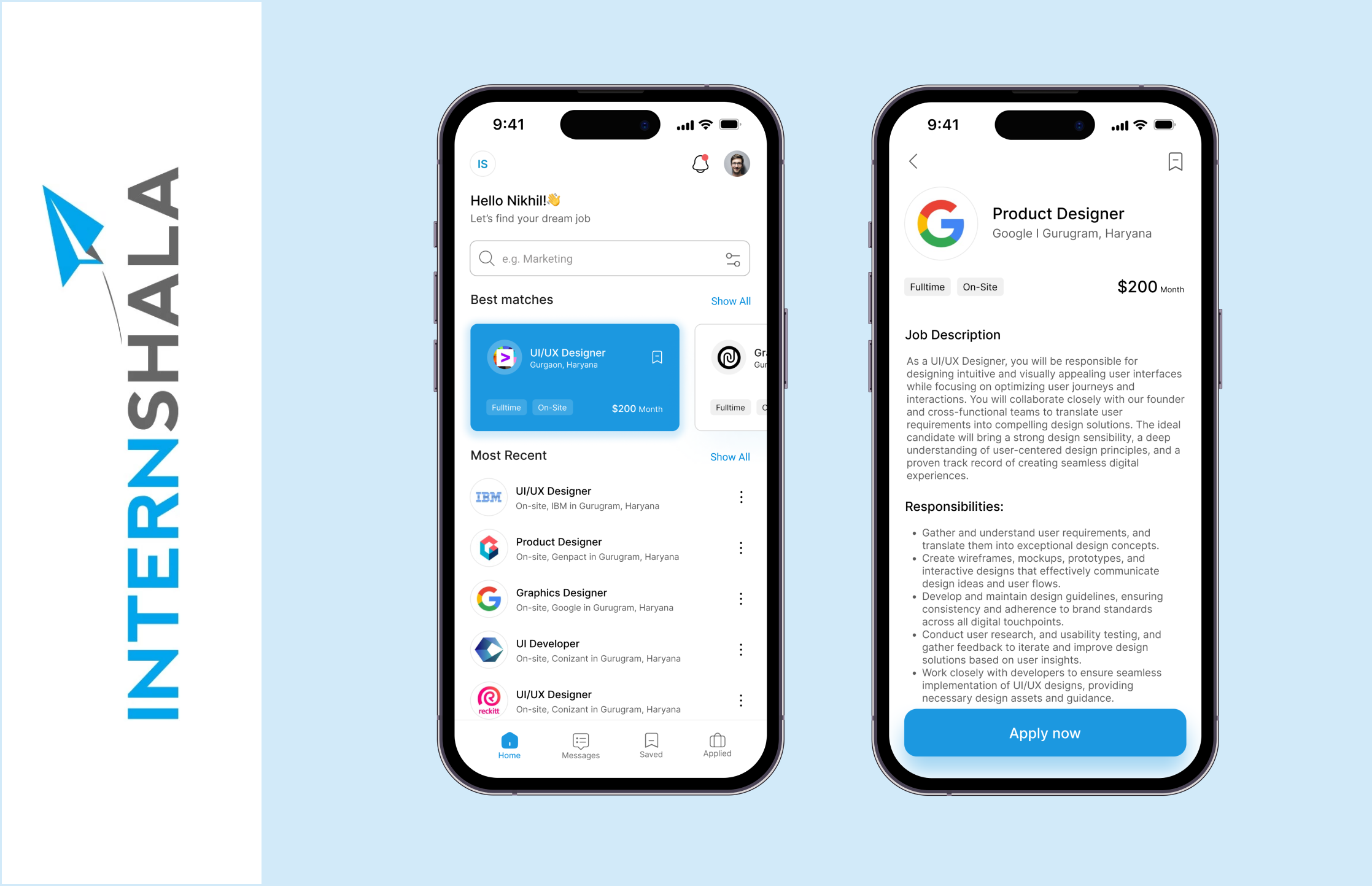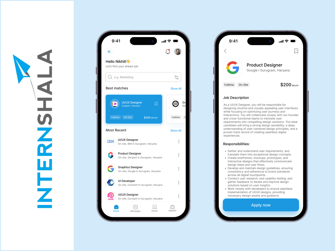 A fresh new App for Internshala.