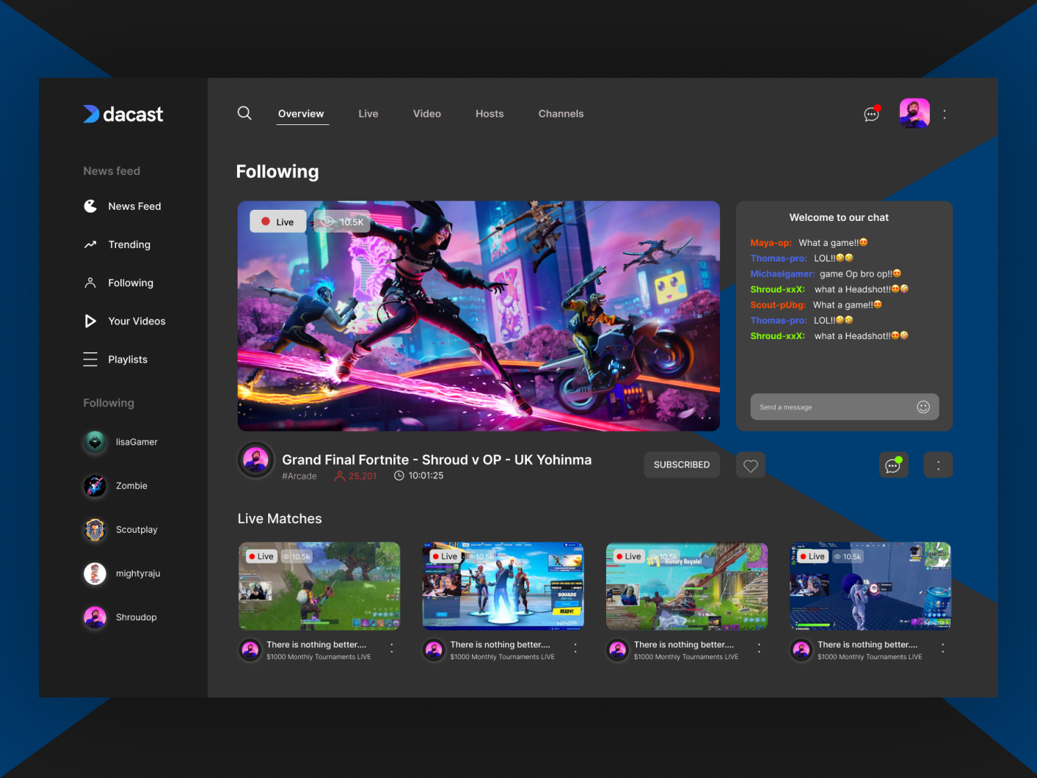 This is a streaming platform dedicated to gamers. This is a place that allows people to watch their favorite games, follow a new streamer, and chat with other streamers.
