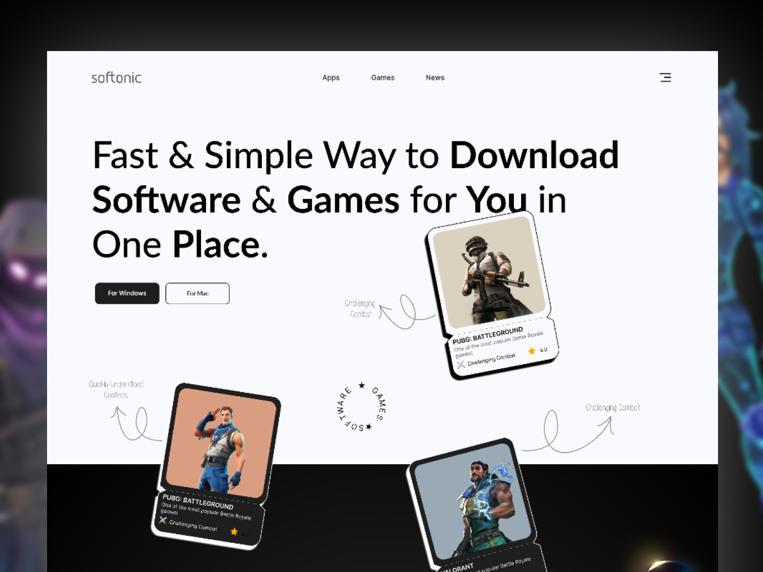 Here’s my redesign of the Softonic Website. This is my vision of the design that matches the platform's functionality and topic. Take a closer look!.